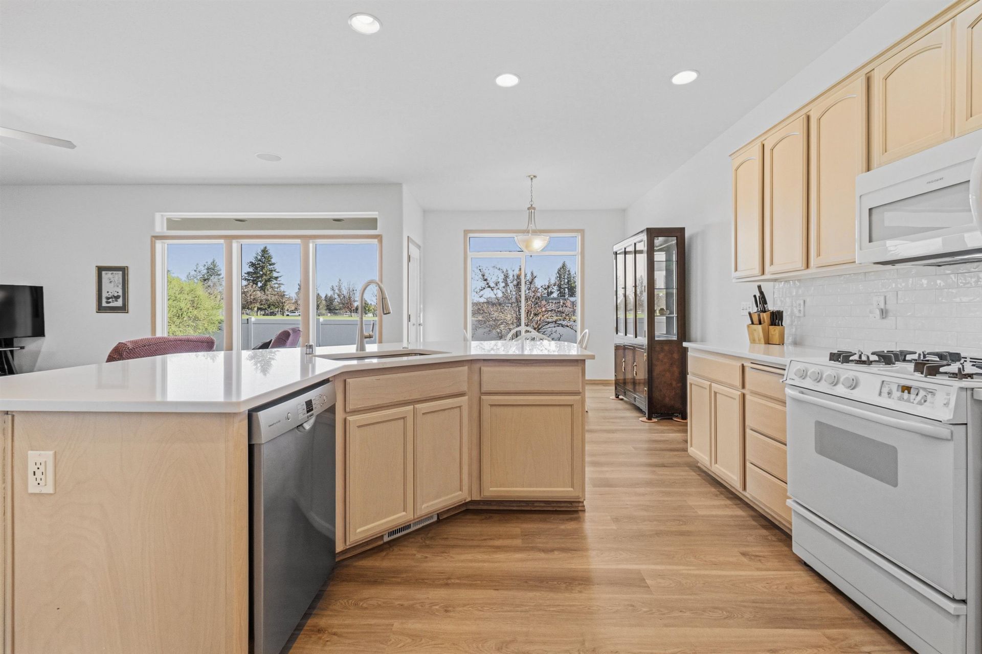 Welcome to Regal Place, a gated community designed for convenience & carefree living. Prime south hill location where you can leisurely stroll, roll, ride or drive to local restaurants, grocery, coffee, library, medical, schools, & a friendly dog park- all just a few blocks away. The main floor features a NO STEP entry from the front door and the garage. The main floor also features two bedrooms, two bathrooms (one is ensuite), a large laundry/mud room PLUS a large office with custom built ins. NEW LVP flooring & Quartz Countertops throughout the main floor. On the lower level you will find room for all your family members or hobbies with its two spacious bedrooms, a bathroom, storage area, and a large gathering area that has plumbing for a for a future kitchen if desired. All this, PLUS they mow the lawn for you!