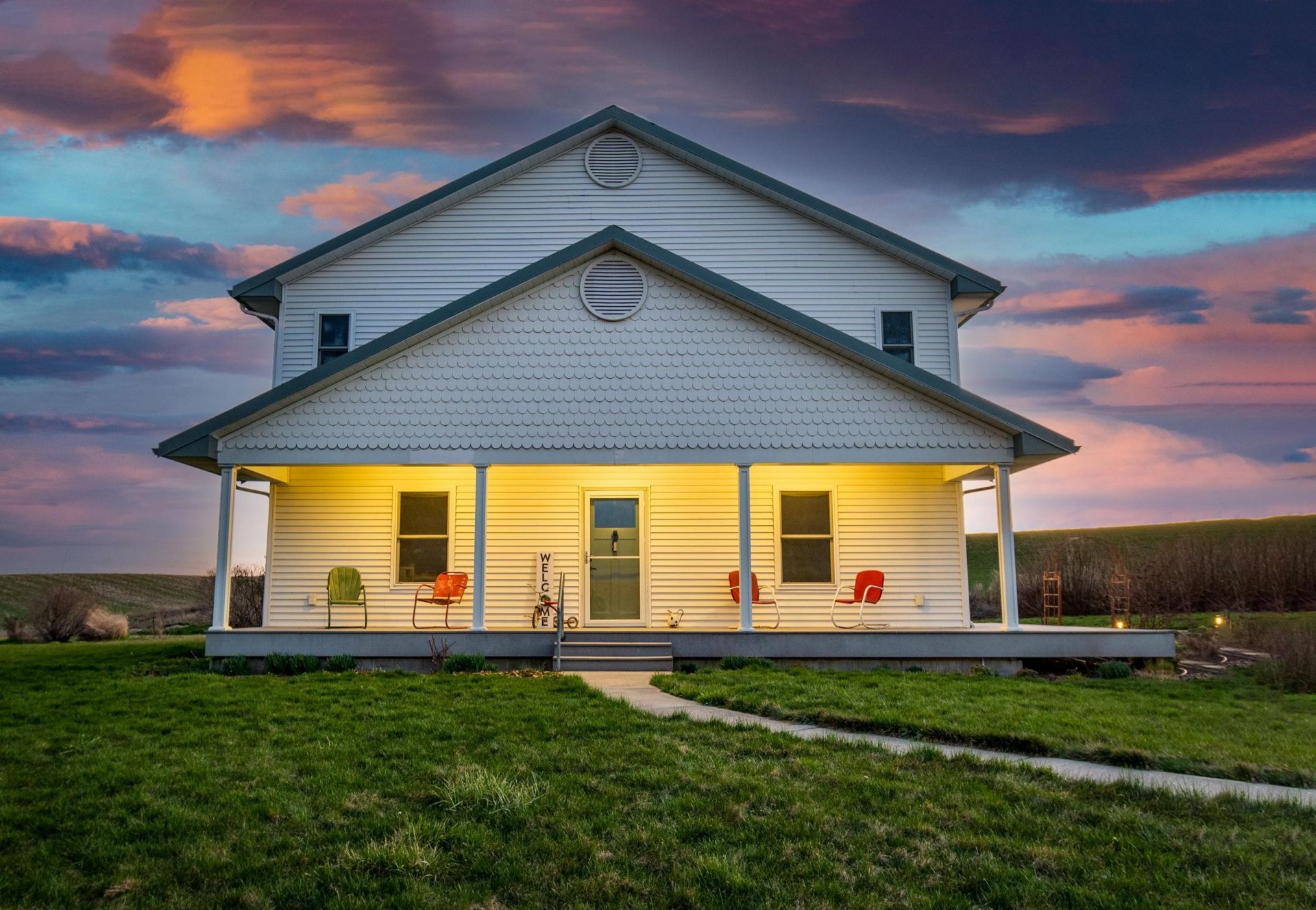 Beautiful 2009 custom farmhouse in Reardan on 8 acres. Top of the line windows, metal roof, efficient furnace/AC. On the main floor you will find formal dining, living room, the primary bedroom/bath, huge laundry room with panty and powder bath. Upstairs 2 additional bedrooms and full bath as well as 2 bonus spaces ideal for office or media, each space has a closet and windows could easily be transformed into a 5 bedroom. Large yard with mature landscaping, sprinklers and fenced garden space. Covered front porch to take in the views. Outbuildings-40x70 insulated and heated shop with kitchen and bathroom-perfect for ADU or home based business, shop has its own septic tank, RV hook-up w/dump. 24x50 metal building with 2 bays enclosed w/power and 3 open bays for additional parking. Original Model A garage with new siding and roof, plus 8x20 storage shed. Unbeatable setting with stunning scenery, surrounded by wheat fields, yet just minutes to town-10 min. Reardan, 20 min. to Fairchild AFB, 40 min Spokane.
