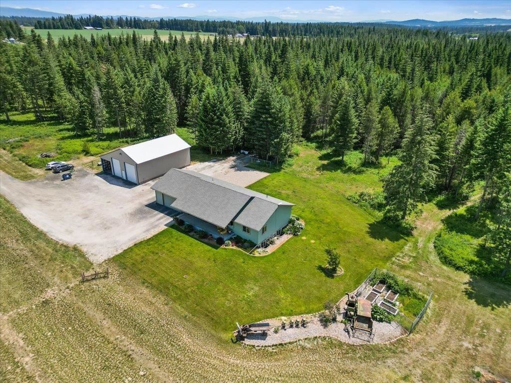 Welcome to this beautifully maintained 4-bedroom, 3-bath rancher on 10.02 level, wooded acres with stunning mountain and territorial views. The open-concept layout features a chefs kitchen with hickory cabinets, Jenn-Air cooktop, and an eating bar that flows into the spacious living and dining areas. The main floor primary suite offers a walk-in shower, a large closet, and convenient access to utilities. The finished basement adds flexible living space and is plumbed for a wet bar, perfect for entertaining. Enjoy year-round comfort with geo-thermal heating and cooling and a durable 50-year roof. The impressive 31x50 shop includes a 14x50 lean-to, 16-ft walls, a 14-ft RV door, a floor drain, and a half bath. Outside features include a fenced garden, room for animals, two wells, sprinkler and drip system, and peaceful seclusion?all just minutes from local amenities.