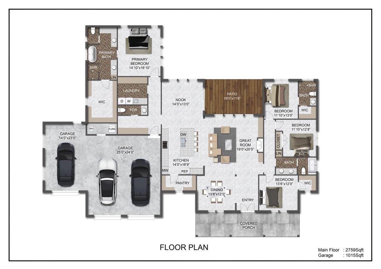 CUSTOM LUXURY SINGLE-LEVEL LIVING | TO BE BUILT. Crafted by Denson Construction, this 2,759 sq ft rancher blends elevated design with effortless livability, featuring 4 bedrooms, 3.5 bathrooms, and a thoughtfully designed layout that lives exactly how todays buyers want. A vaulted great room anchors the home, flowing seamlessly into a designer kitchen with oversized island, walk-in pantry, and direct access to a covered patio, creating a true indoor-outdoor lifestyle. The primary suite is privately positioned and designed to feel like a retreat, complete with a spacious walk-in closet, dual vanities, and a spa-inspired bath. Secondary bedrooms offer generous proportions with 10 ceilings throughout, bringing in natural light and volume across every space. A 3-car garage with over 1,000 sq ft provides flexibility for storage, recreation, or a workshop. An opportunity to build with one of the areas premier builders and fully customize finishes to your vision.